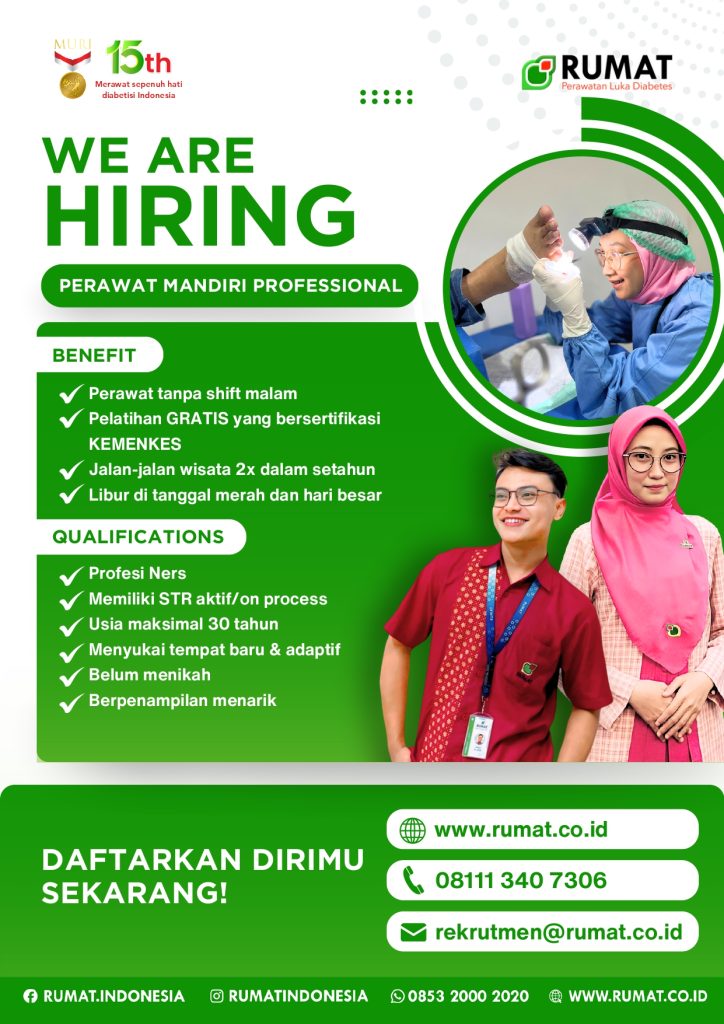 WhatsApp : 0811-1340-7306 (Diklat RUMAT) atau Email : rekrutmen@rumat.co.id