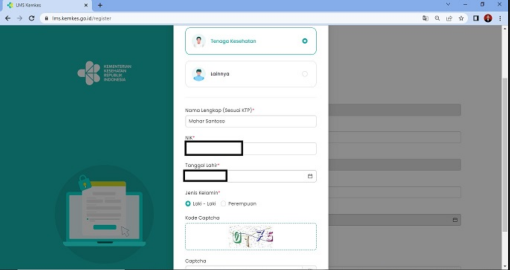 - Masukan NIK, tanggal lahir, pilih jenis kelamin, dan masukkan kode Captcha.